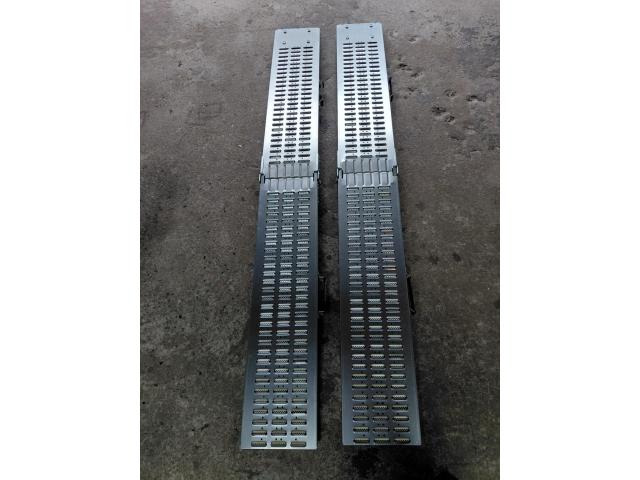Paire de rampes de chargement en aluminium, parfaites pour charger facilement des remorques, motos, quads ou autres équipements lourds. Idéales pour les professionnels et les particuliers.