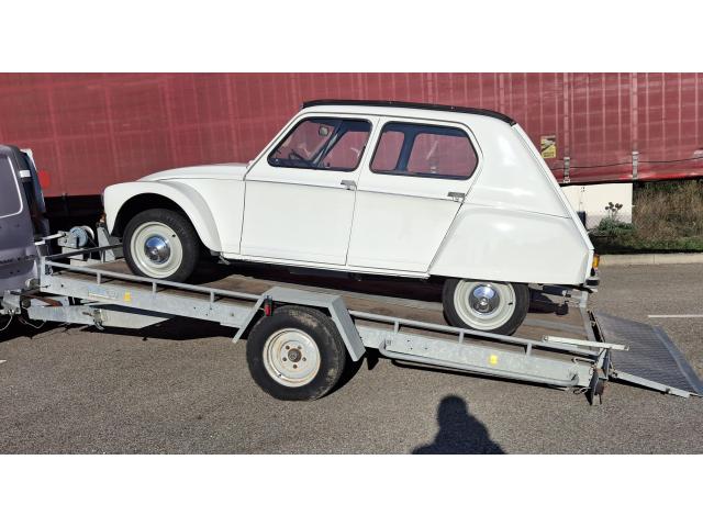 La remorque est basculante hydraulique. Elle dispose également d'un treuil manuel ,Rampe arrière, d'une roue de secours.