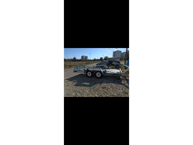 Remorque 2 essieux, plateau basculant, treuil manuel. PTAC 3.2T