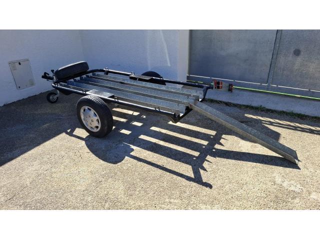 Remorque plateau idéale pour transporter votre moto, scooter, quad ou vos vélos en toute sécurité.