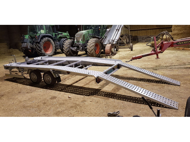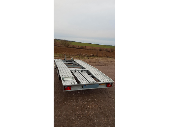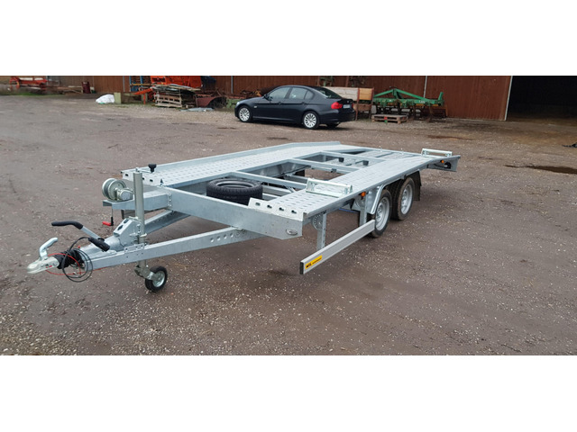 Loue remorque porte-véhicule freinée double essieux, dimensions utiles de 4.50m x 2.05m et PTAC de 2700kg.